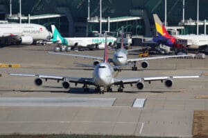 There are some great spots on the south side of the airport in the afternoon. The photo locations are on on a small hill, looking over either the runway threshold or touchdown area. You’d need a 300mm-400mm lens for most of the traffic. From my location, I can photograph both line up and approach (short final) which is perfect!