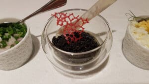 I have a wonderful rest and asked Leanne to wake me up about 2 hours before landing. I took a shower in my own private bathroom inside The Residence. To my surprise, a very soft bathrobe with my initial is hanged and ready to use!