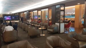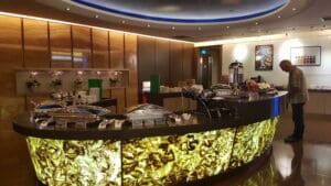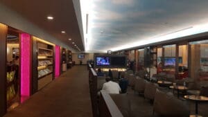It has all the amenities a business class lounge should have such as shower, seating area, an extensive buffet, reading material, business center and children’s play area.
