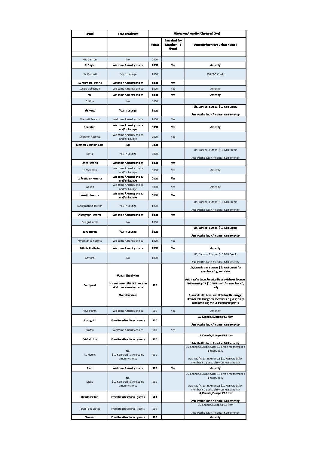 Marriott Breakfast and Welcome Amenity